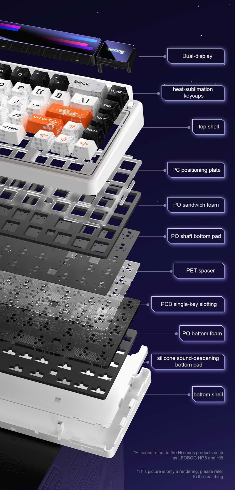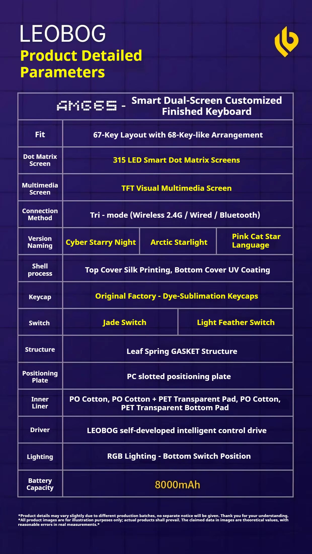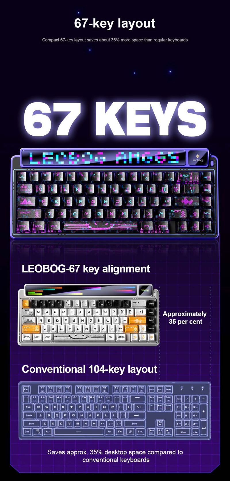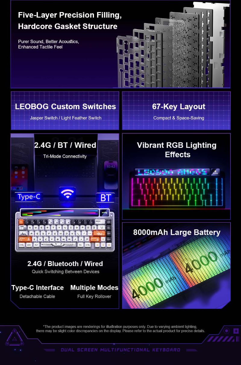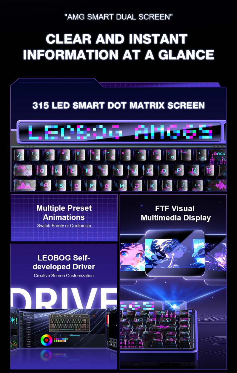 Leobog AMG65 Kablosuz Çift Ekranlı Mekanik Klavye