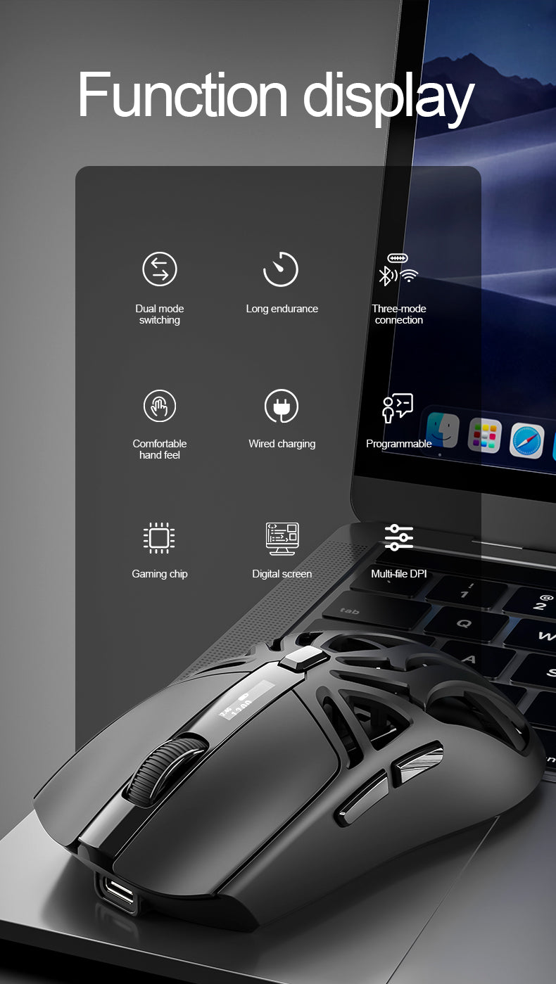 1000Hz - 10000Dpi - 3 Modlu (Kablolu/2.4Ghz Kablosuz /Bluetooth) - 500mah Batarya - USB Alıcı - Type C Kablo - 70g+5g