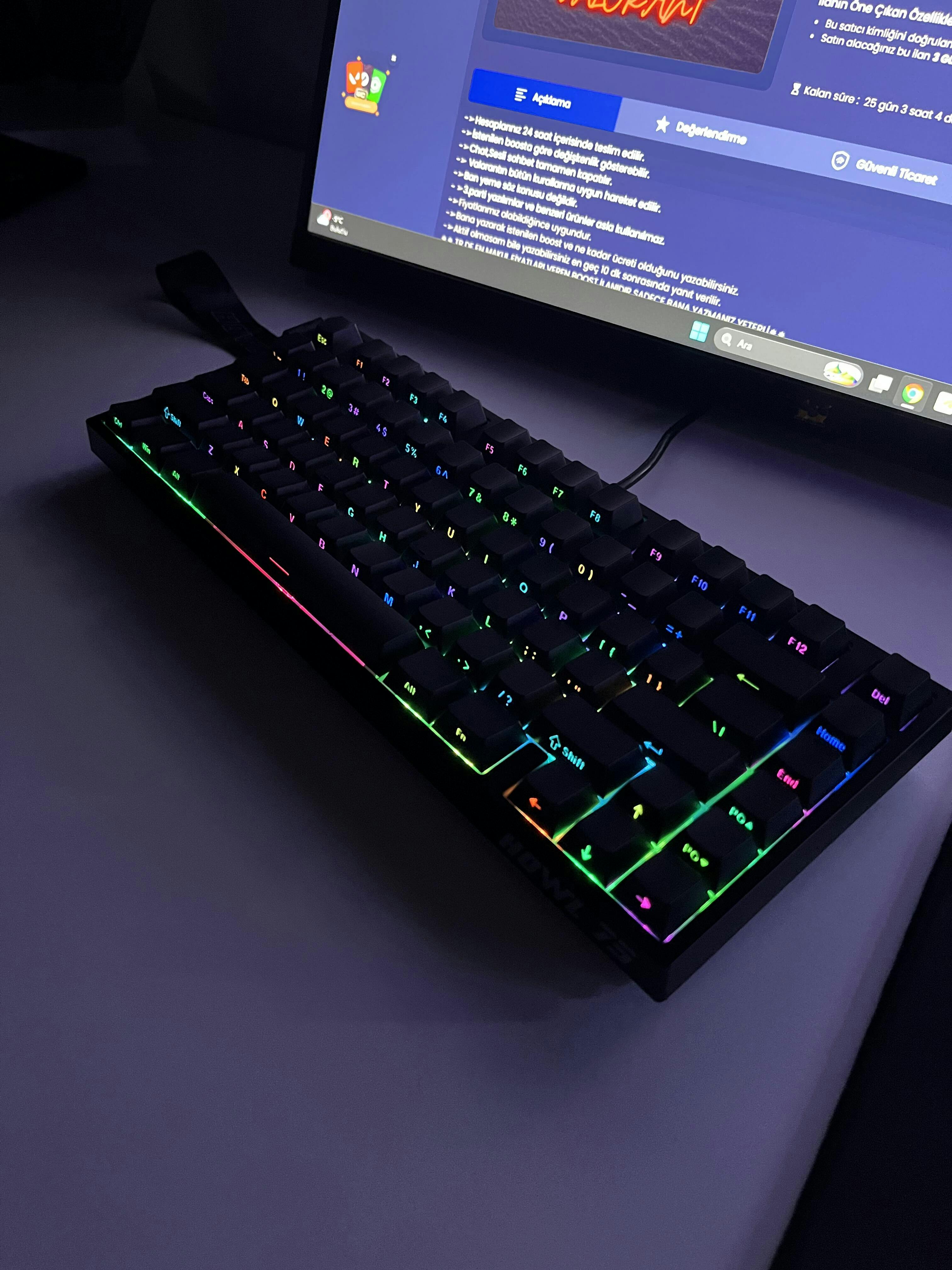 - Side print PBT keycapler ve güney yönde konumlandırılmış RGB ledler